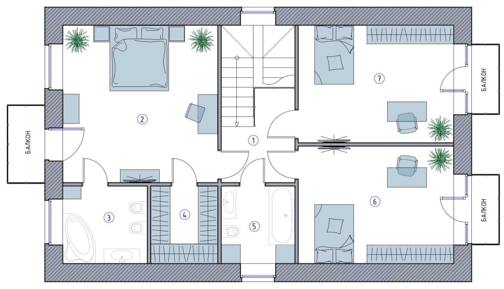 Общая площадь дома: 212м2;