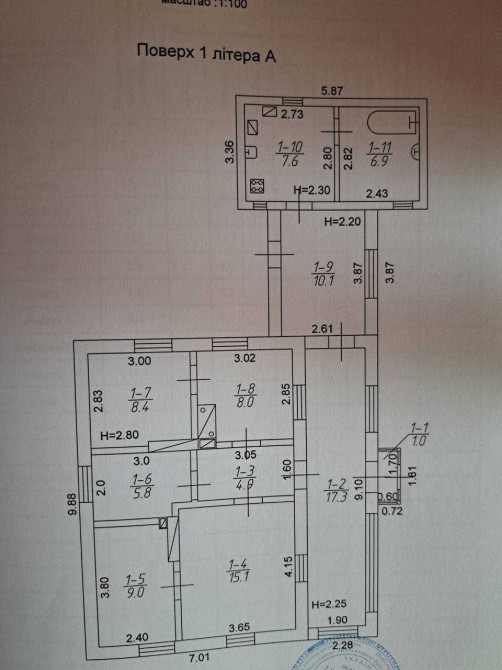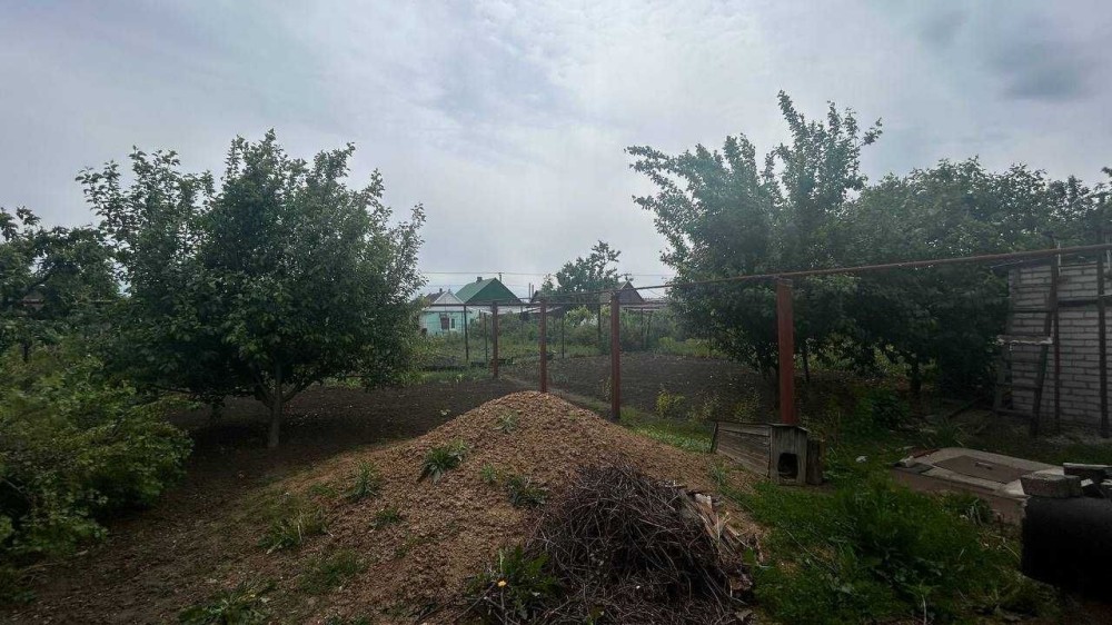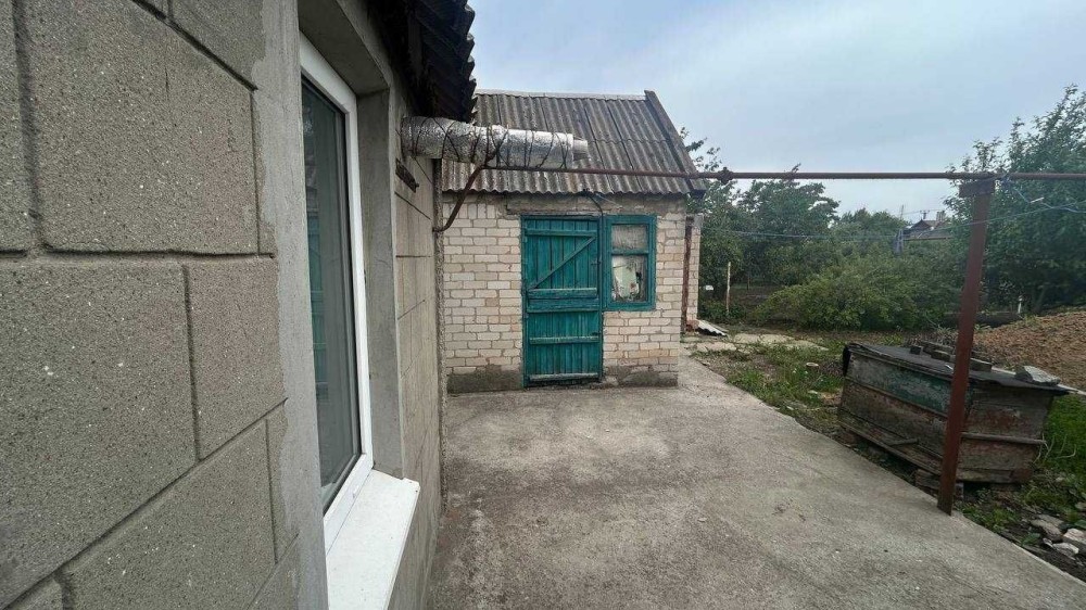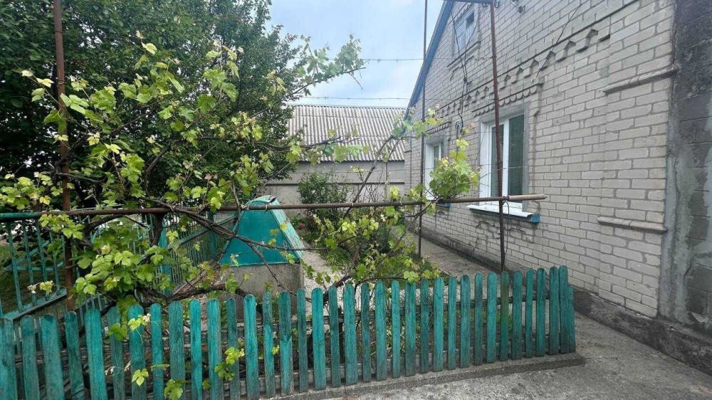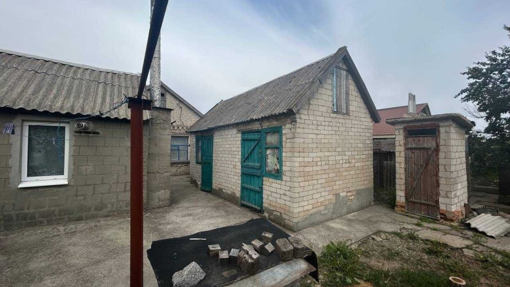 Одноповерховий будинок із земельною ділянкою на 7соток. 5 кімнат, 2 коридори, 94,1 КВ.м. цегляні стіни. Комунікації: електрика, вода, газ. У дворі госпприбудови, льох. Є плодові дерева.