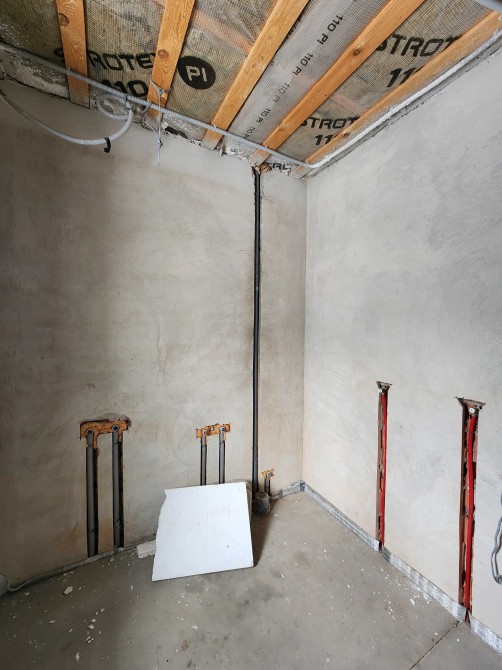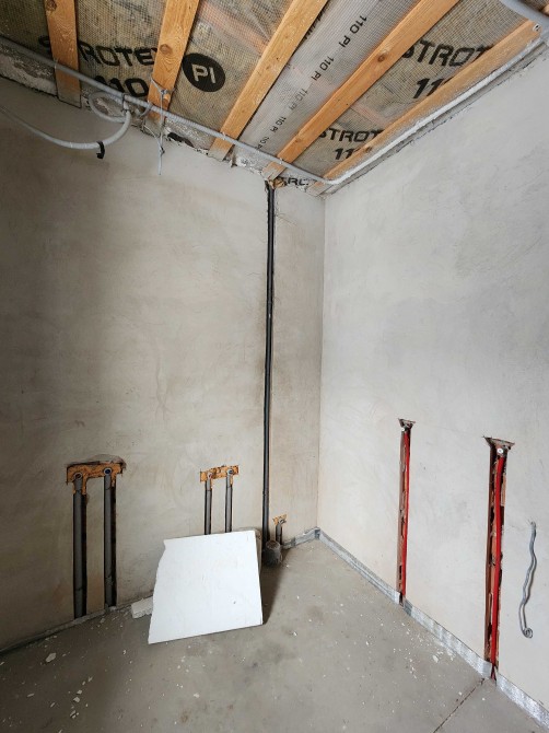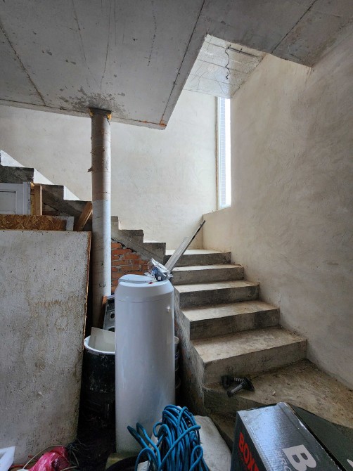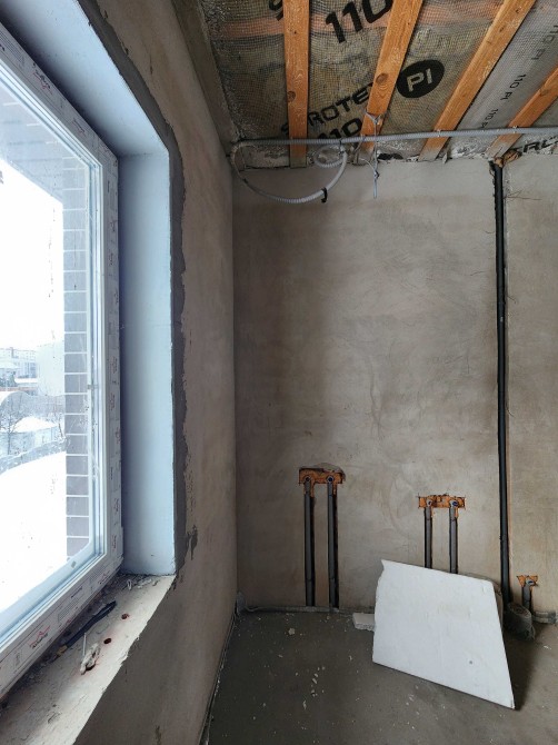 В будинку зроблено електрика, сантехніка, опалення, тепла підлога, чистова стяжка підлоги, штукатурка, на другому поверсі встановлені радіатори.