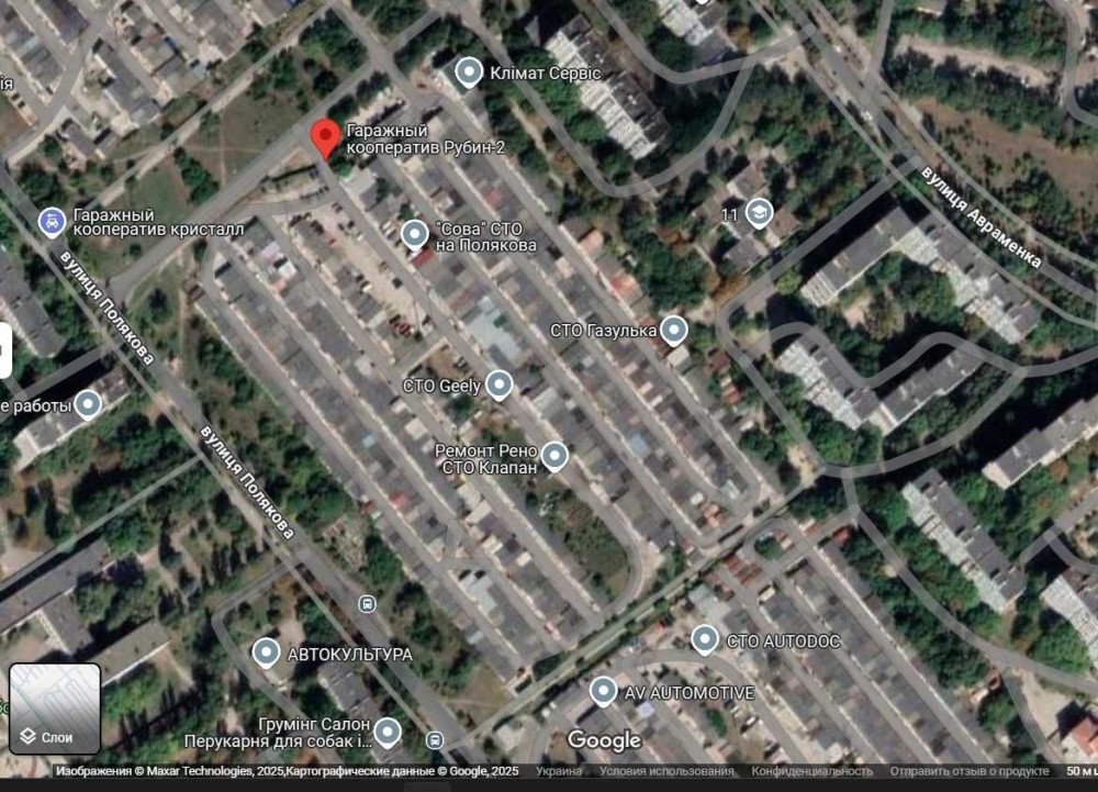 Запорожье, ул. Полякова, кооператив "Рубин-2"(гугл карты) заезд, ворота, юридически гаражный кооператив "Энергия"