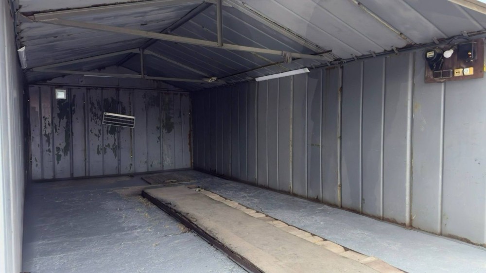 Есть подвал,смотровая яма,свет,стеллажи