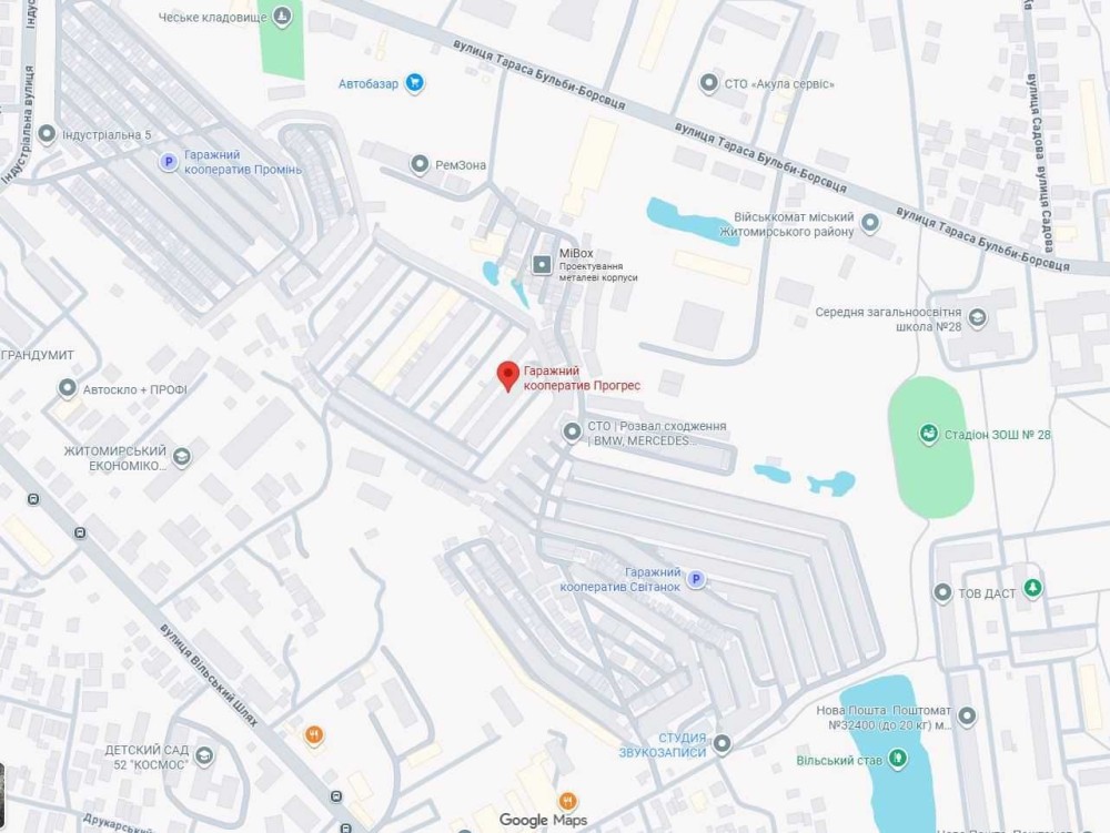 Продам гараж в ГК "Прогрес"(м. Житомир, вул. Вільський Шлях). Гараж має площу близько 20м квадратних. Ширина воріт 2.5м. Підведено світло та встановлено лічильник. Підлога - цементна стяжка. Є оглядова яма. Кооператив під охороною та відеоспостереженням.