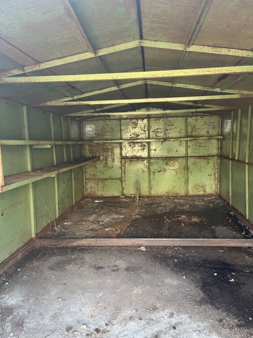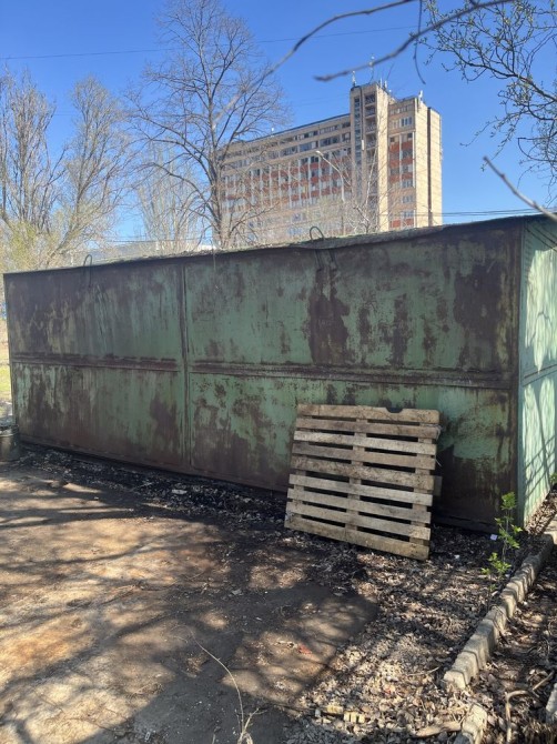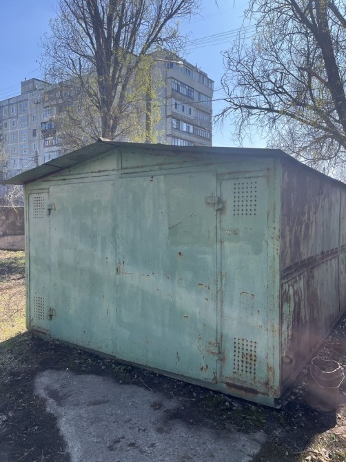 Металевий, підлога бетонна, утеплений керамзитом, є електрика. Великий погріб: 2 приміщення + прохід. Територія охороняється, вивозиться сміття, є естакада. Від власника. Торг.