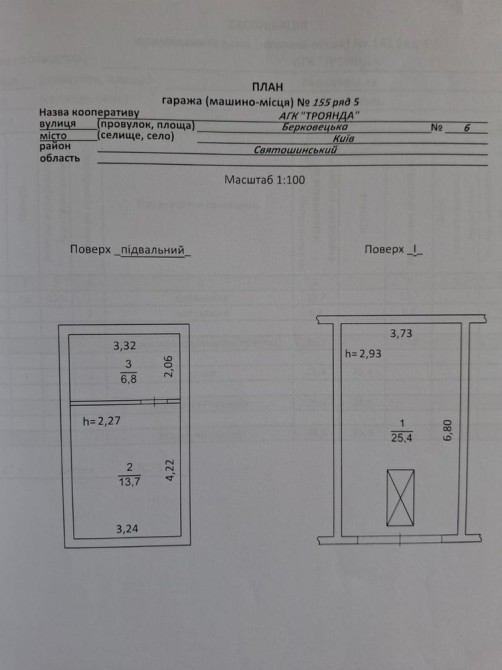 Цегляний гараж із ямою та великим погребом на дві кімнати. Загальна площа 45.9м2. ГК Троянда, вул. Берковецька, знаходиться безпосередньо біля Лавіна Мол та ЖК Lucky Land. БЕЗ ТОРГУ, вартість переоформлення сплачує покупець.