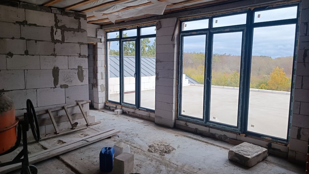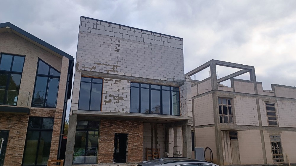 3 этажа: 1й большой холл+кухня+санузел/хоз помещение. 2й этаж 3 большие комнаты +санузел. 3й этаж большая зона отдыха, можно под большую комнату + выход на большую террасу с видом на море.