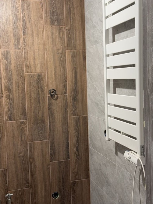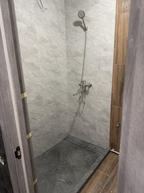 В квартире абсолютно все новое - сантехника, электрика, все окна/двери. На полах стяжка, стены все выведены. Ванну и туалет перестраивали полностью. На проекте указан старый вариант с ванной, у нас выстроенная душевая кабина.