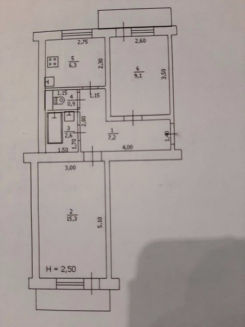 • Площадь кухни 6.3 м2