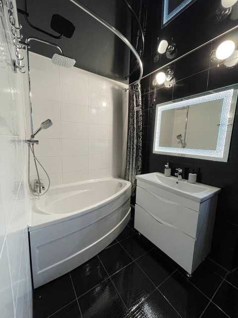 Квартира тепла, світла та затишна. Має індівідуальне опалення (2-х контурний газовий котел Bosch), кухня, балкон та лоджія - тепла підлога. Є бак з гідрофором і запасом води 300л. Санвузол роздільний. Чорно-біла дизайнерська кухня. Холодильник ноуфрост. Газова варильна поверхня, електрична духова шафа Samsung, пральна машинка - автомат. Невеликий Smart TV на кухні та великий у кімнаті (Samsung, 55").
