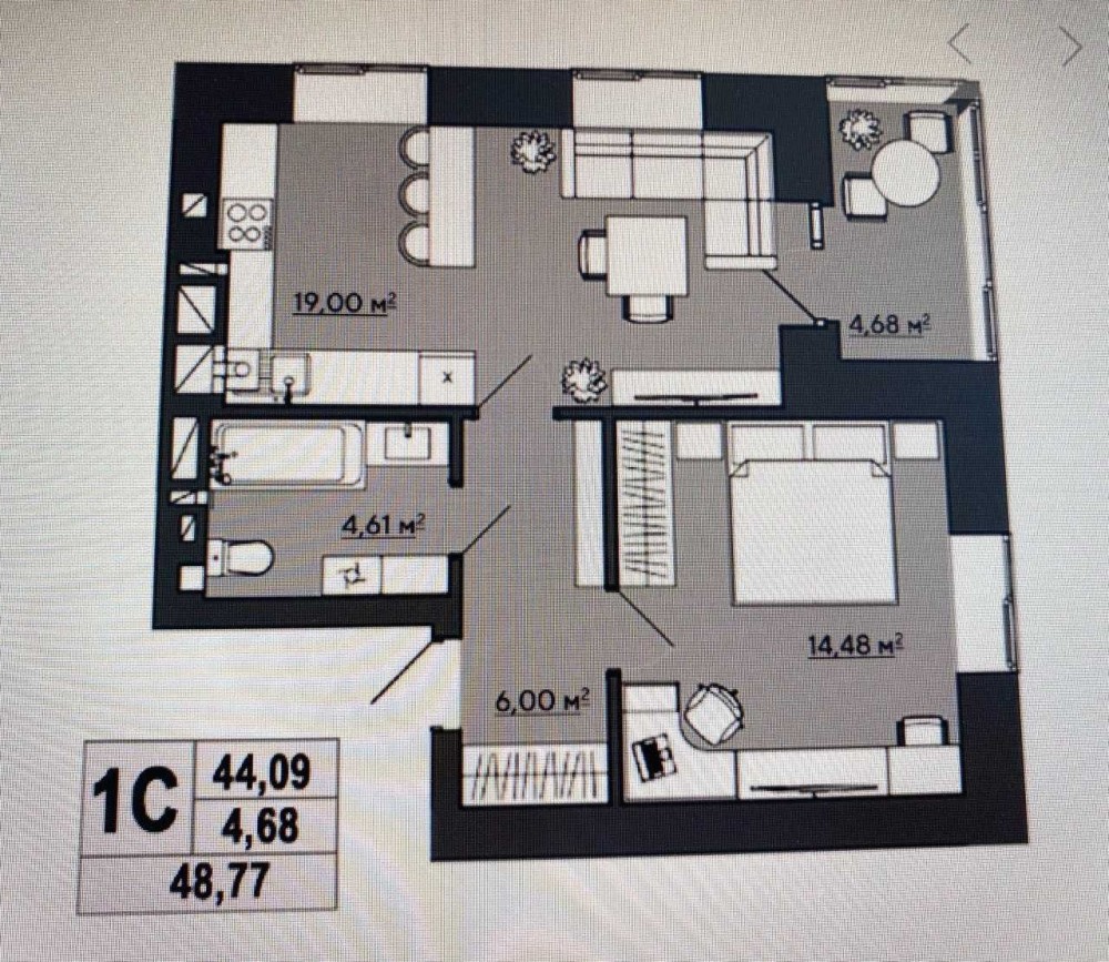 - Однокомнатная