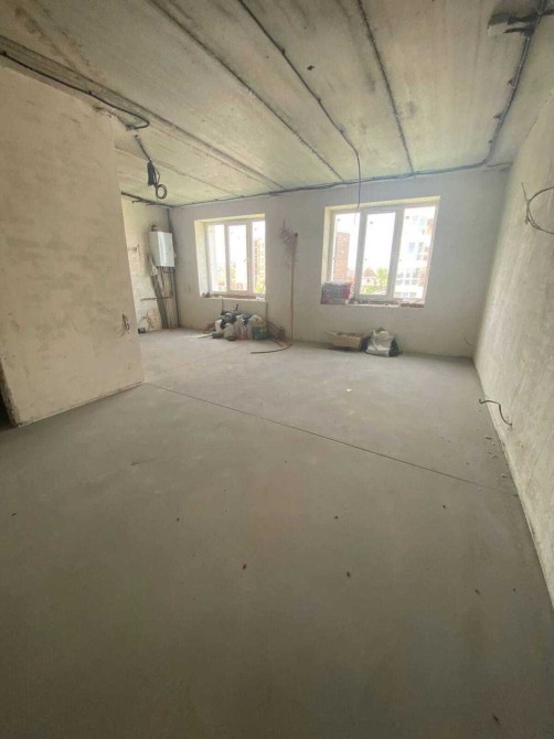 Квартира в будівельному стані. Відштукатурені стіни, зроблено стяжку підлоги, розкинута проводка, тепла підлога.