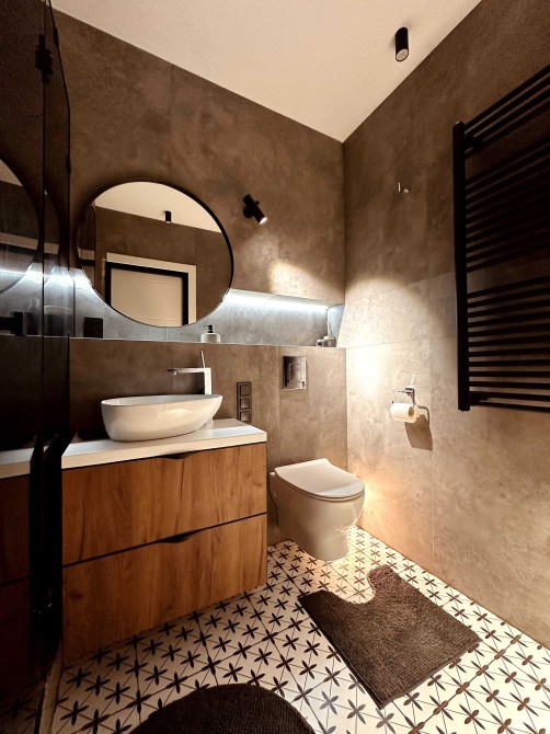 Оснащена сучасними інженерними системами, внутрішньопідлоговий конветкор біля панорамного вікна в столовій зоні. Тепла підлога скрізь окрім спальної кімнати з автоматичним регулюванням термостатами! На котел встановлений сучасний програмований енергозберігаючий термостат Бош з віддаленим керуванням та функцією визначення геолокації! На вхід на воду встановлений самопромивний фільтр та зворотній осмос з мінералізатором для питної води. В душовій кабіні змонтована система скритого монтажу з термостатом!