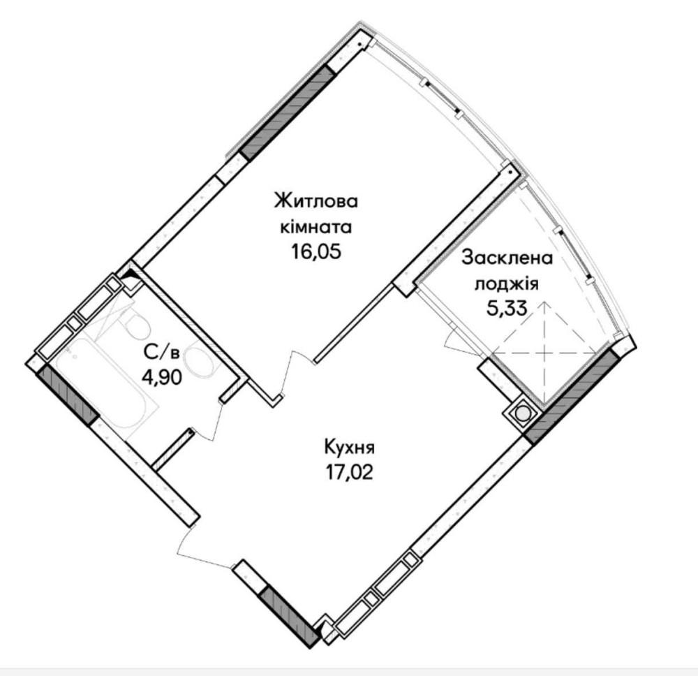 Площа - 43,3м2.