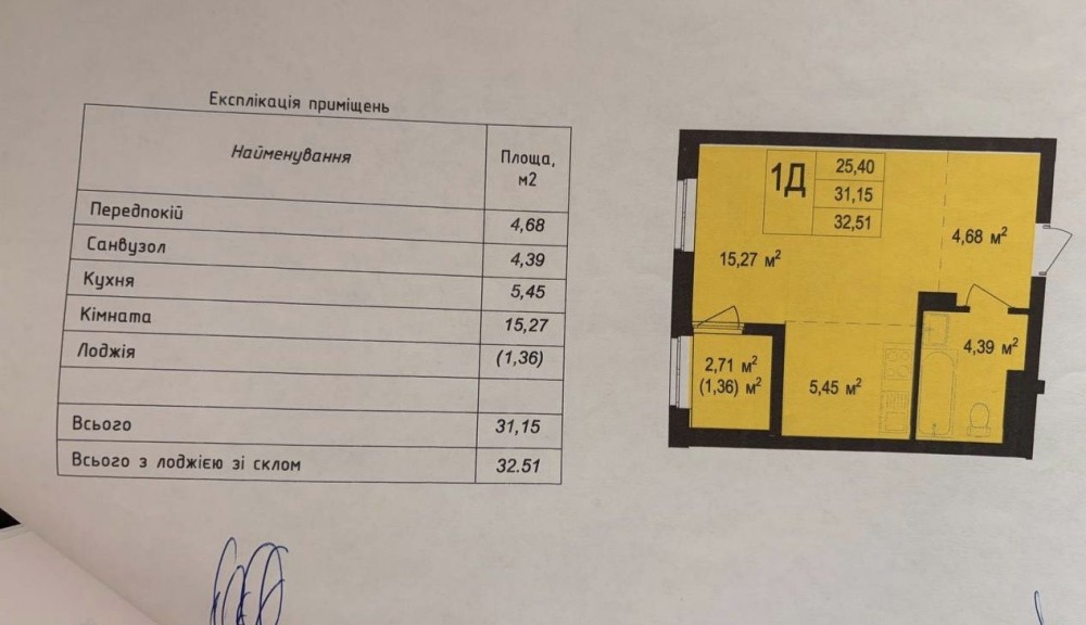 • Общая площадь 31.15 м2