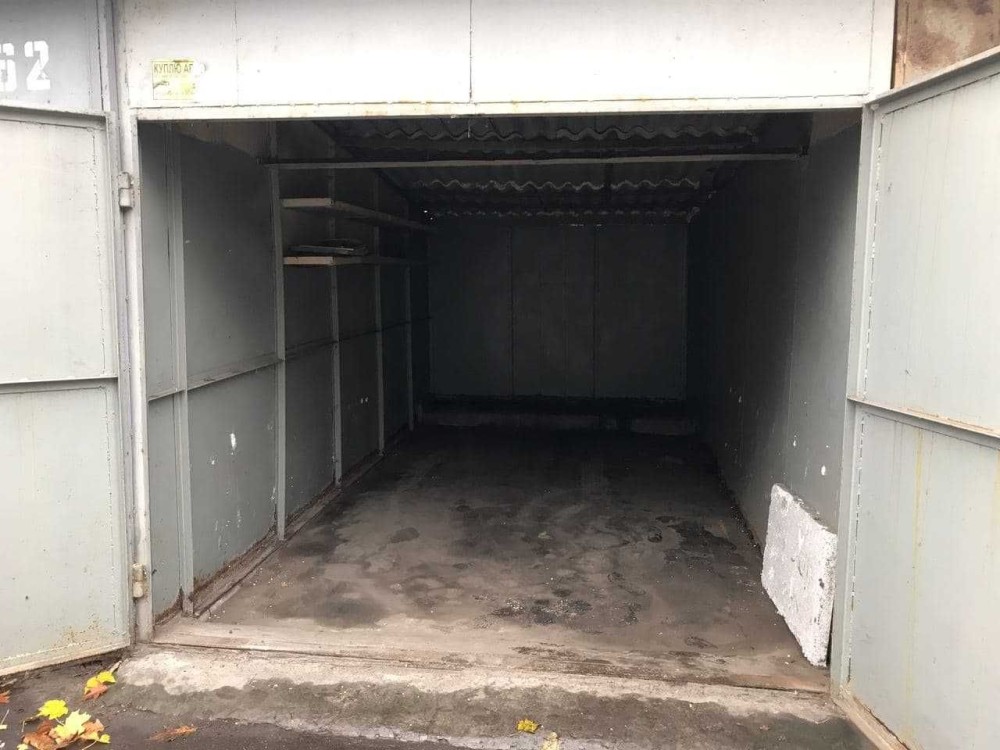 Металевий, підлога бетонна, утеплений керамзитом, є електрика. Великий погріб: 2 приміщення + прохід. Територія охороняється, вивозиться сміття, є естакада. Від власника. Торг.