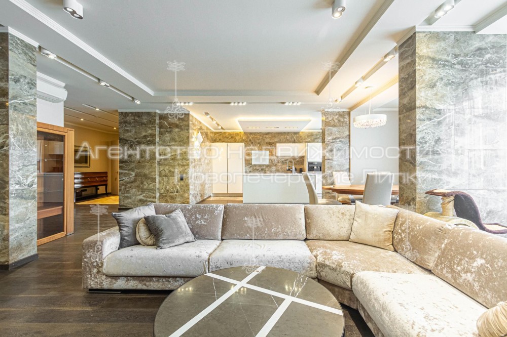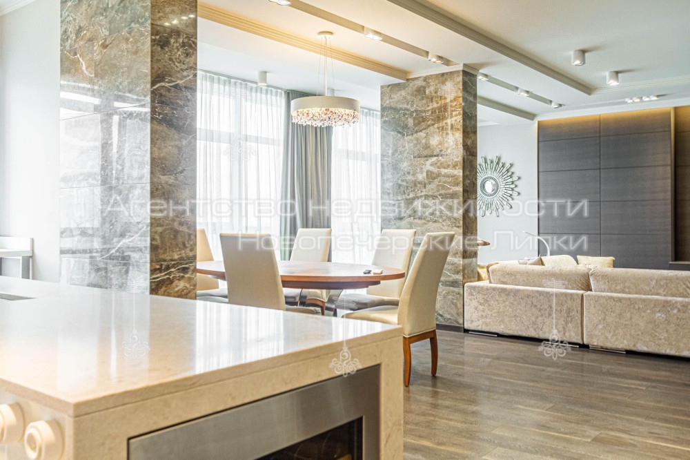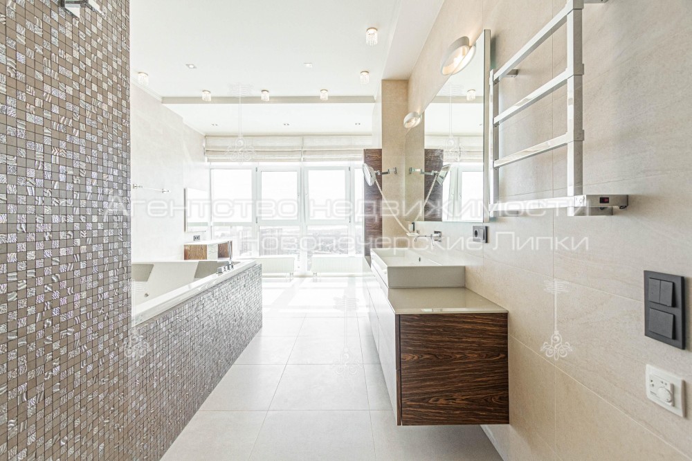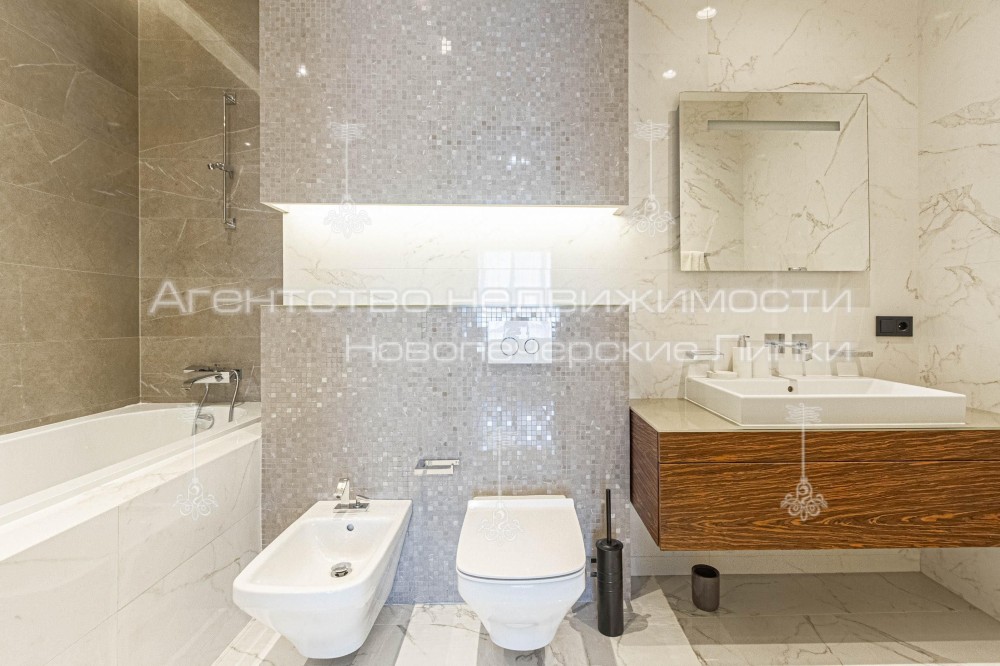Кондиционер, Подогрев полов, Ванна, Душевая кабина, Мебель на кухне, Гардероб, Терраса, Панорамные окна, Сигнализация, Пожарная сигнализация, Видеонаблюдение, Консъерж, Охраняемая территория, Парковочное место, Подземный паркинг, Лифт, Грузовой лифт, Автономный электрогенератор