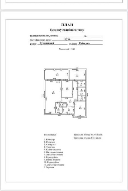 Продам новий будинок в м. Буча, вул. А. Солов'яненка загальною площею - 184 м. кв., житлова має три окремі кімнати (18+19+17.4) м. кв., дуже простора кухня-студія - 50.5 м. кв., з виходом на криту терасу - 26 м. кв., два сан вузли, дві гардиробні кімнати, котельня.