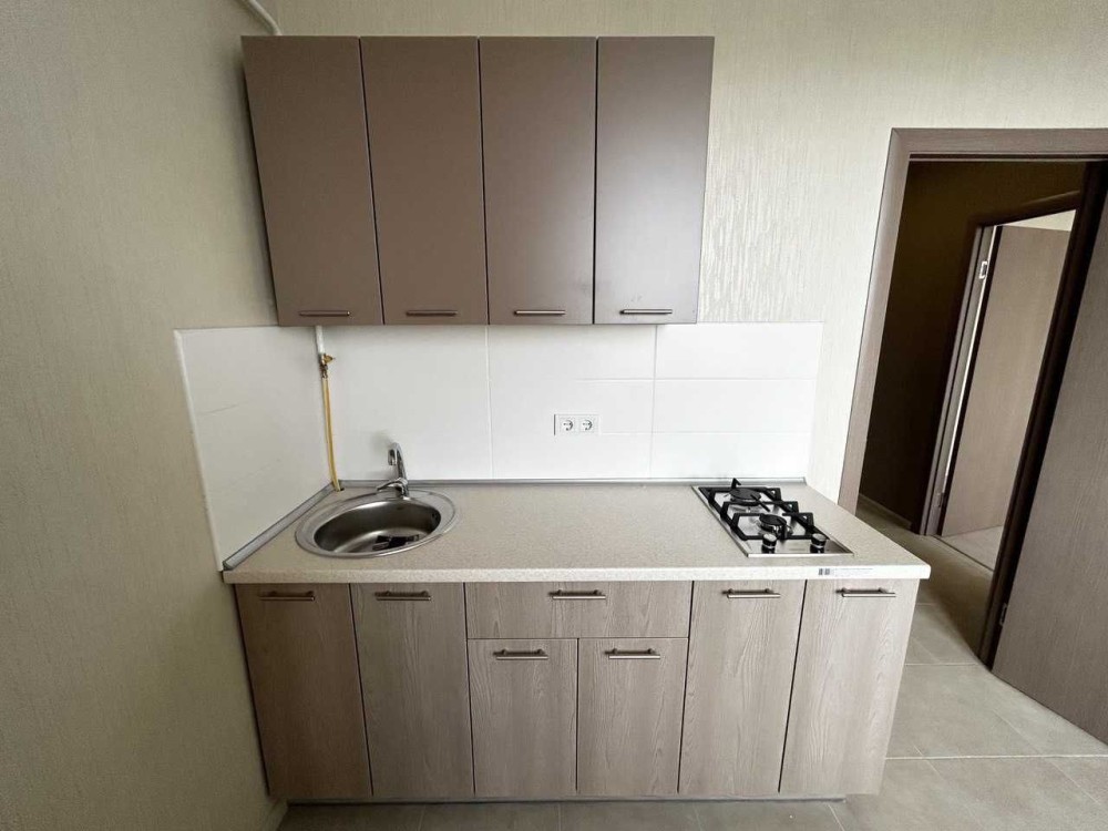 Установлена кухонная мебель, вся необходимая сантехника.