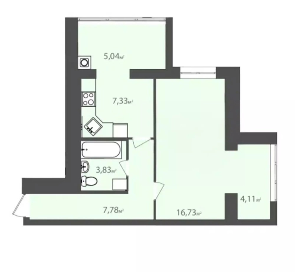 • Площадь кухни 7.33 м2