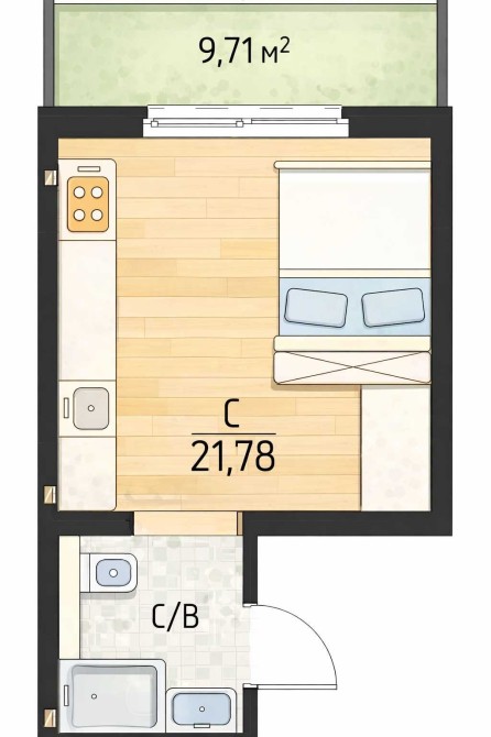 • Общая площадь 21.78 м2
