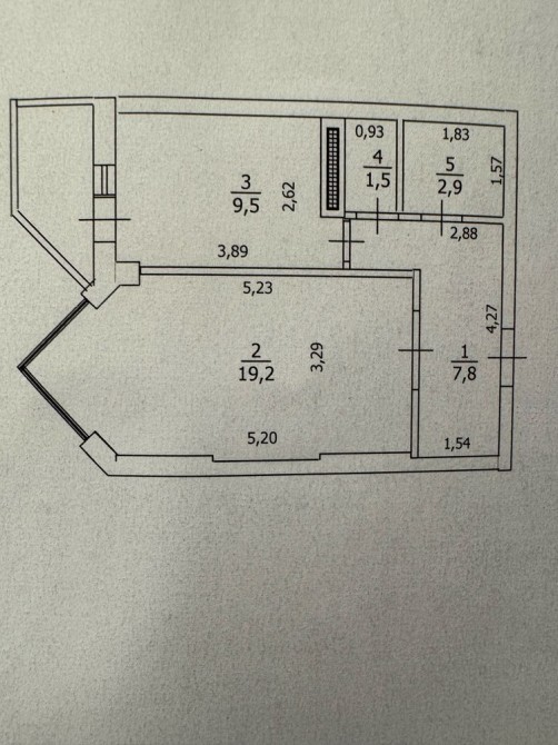 Площа 42кв м, кухня 9,5кв м.