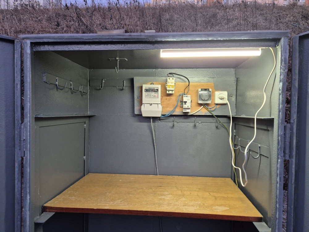 парко місце (металевий герметичний шкаф, з двома розетками, одна із них посилена Schneider і заземлена нержавійкою, прокладений кабель 20 м × 2.5 мм., диференційний автомат, світильник), на стоянці з охороною, вул Чавдар 2, нижня стоянка, можливе заряджання гібрида - електромобіля. Помісячна оплата стоянки- 1200 грн, ціна кВт - 20 грн. Або продаж окремо готового обладнаного металевого шкафа, для підключення на Вашому місці - 2300 грн. В обох випадках, продаж без лічильника.