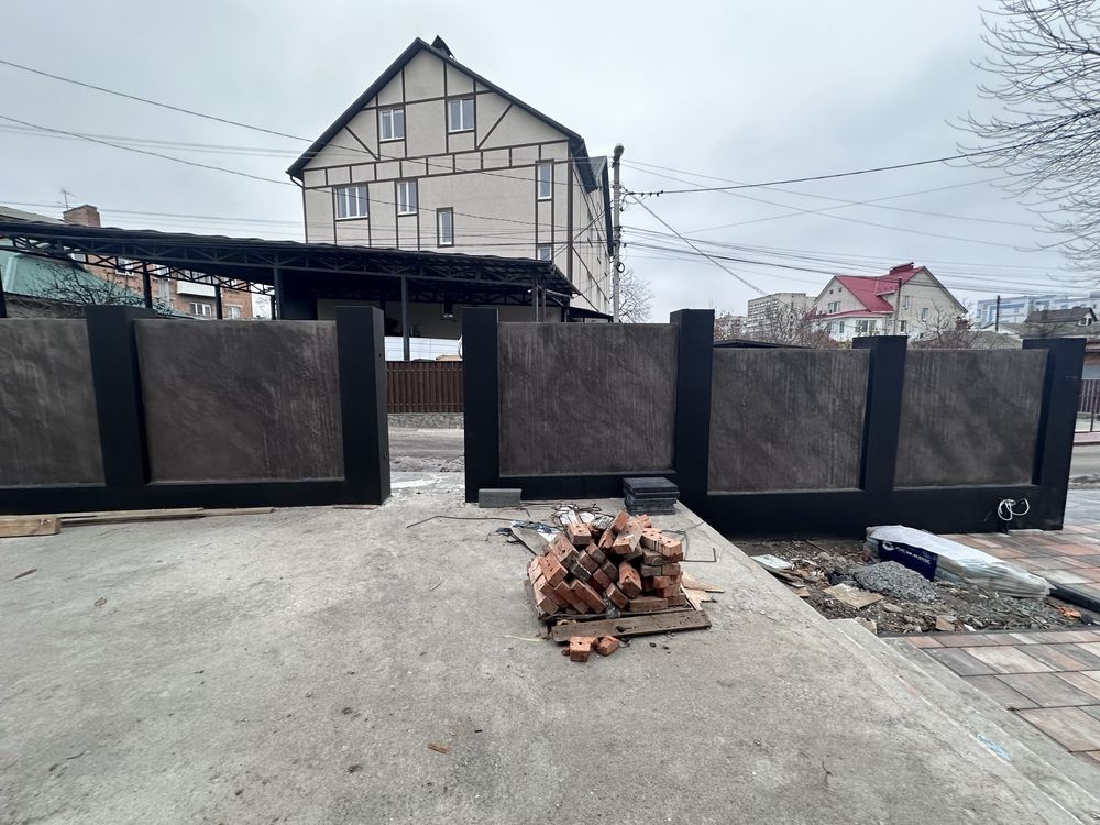 Паркан по периметру , тратуарна плитка .