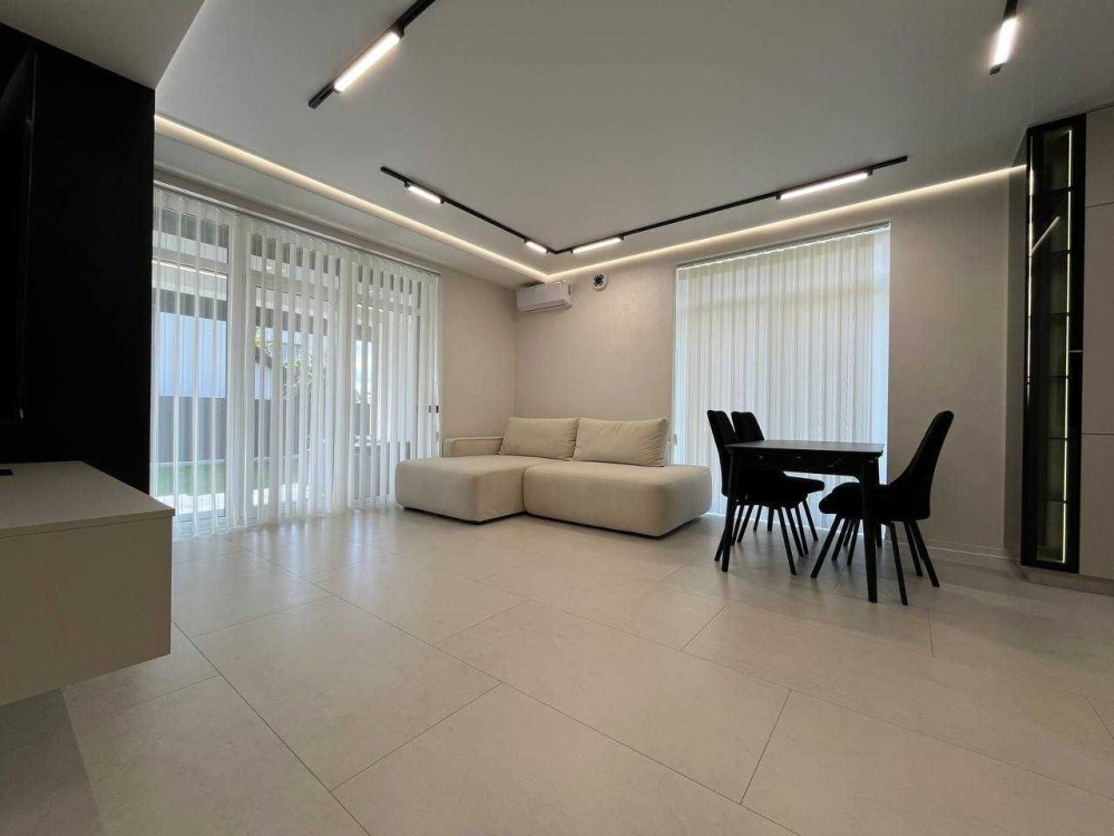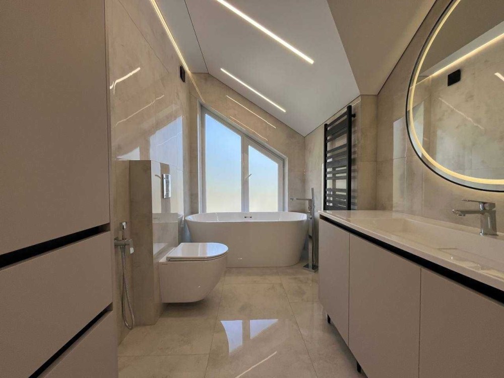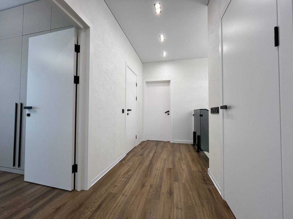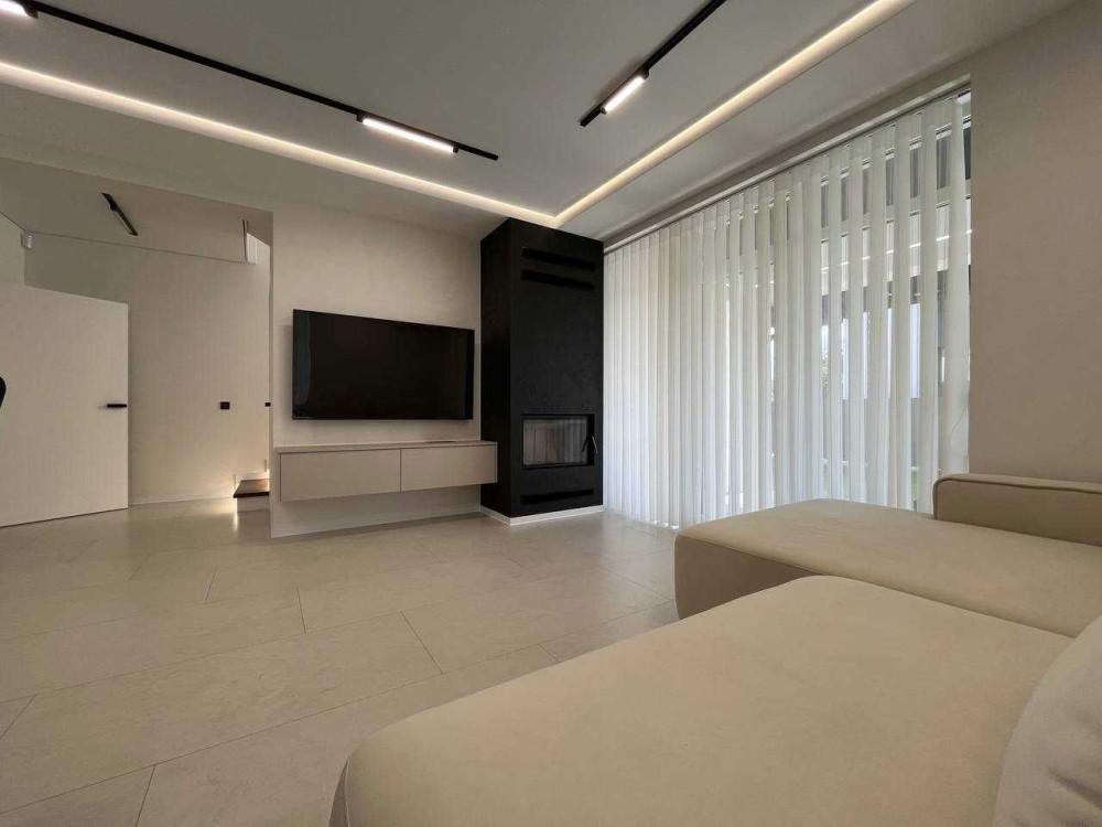 Ремонт виконаний із використанням преміальних матеріалів: італійська плитка, вологостійкі фарби, сучасні шпалери. Світлі тони дизайну візуально розширюють простір, додаючи відчуття легкості та простору. Система прихованого освітлення створює затишну атмосферу у вечірній час, а камін у вітальні стає не лише стильним акцентом, але й додатковим джерелом тепла. Електрика продумана до дрібниць: усі зони щитової підписані, є виводи під зарядку електромобіля та захист від перепадів напруги. Енергоощадні рішення значно зменшують витрати на комунальні послуги.