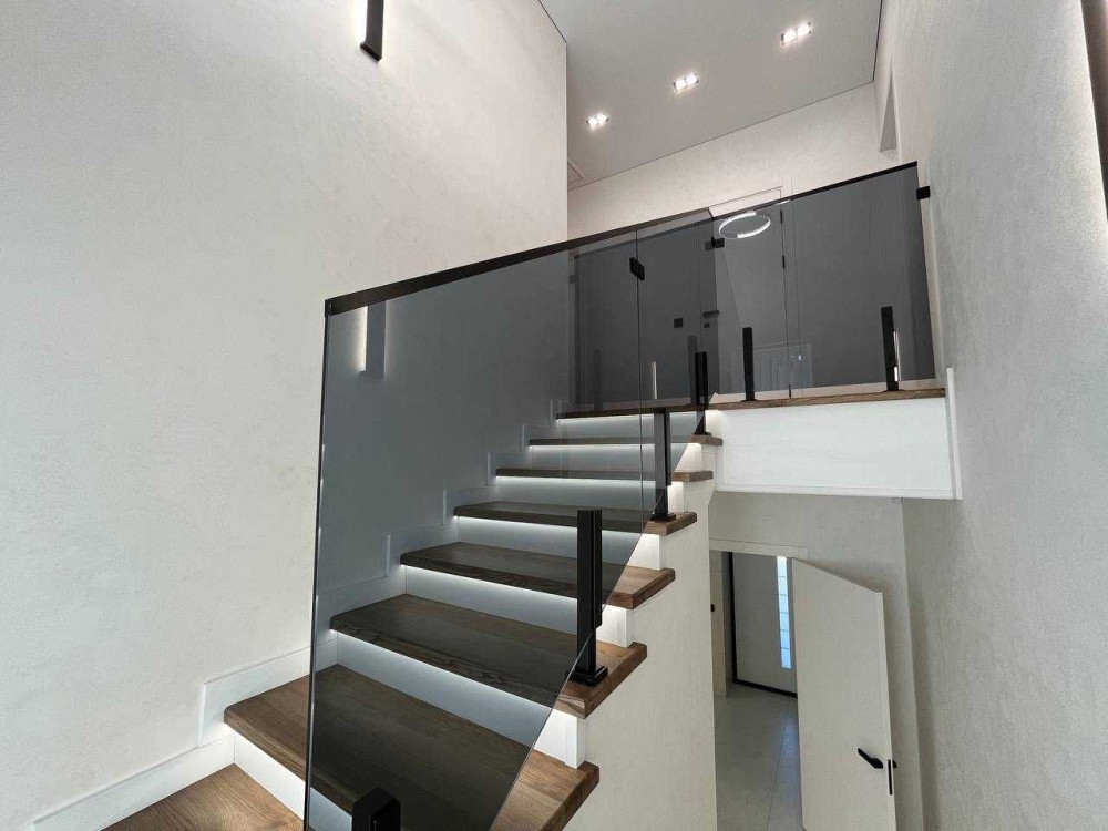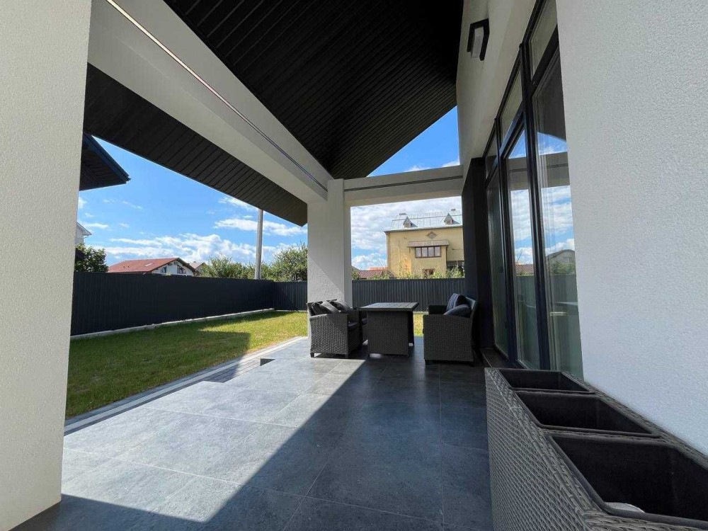 Цей будинок вражає своєю ергономікою та простором. На першому поверсі вас зустріне простора кухня-вітальня у форматі open space з панорамними вікнами та виходом у затишний двір — ідеальне місце для сімейних вечорів чи прийому гостей. Кухня функціонально відокремлена від вітальні, зберігаючи при цьому відчуття простору та свободи. У передпокої — місткі вбудовані шафи для зберігання, а також гостьовий санвузол для максимальної зручності. На другому поверсі розташовані затишні спальні з гардеробними, великий санвузол із ванною та додатковий санвузол із душем. Сходи з LED-підсвіткою не лише додають стилю, але й забезпечують безпеку в темний час доби.
