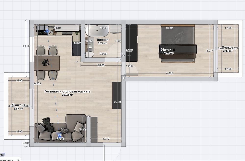• Трехкомнатная