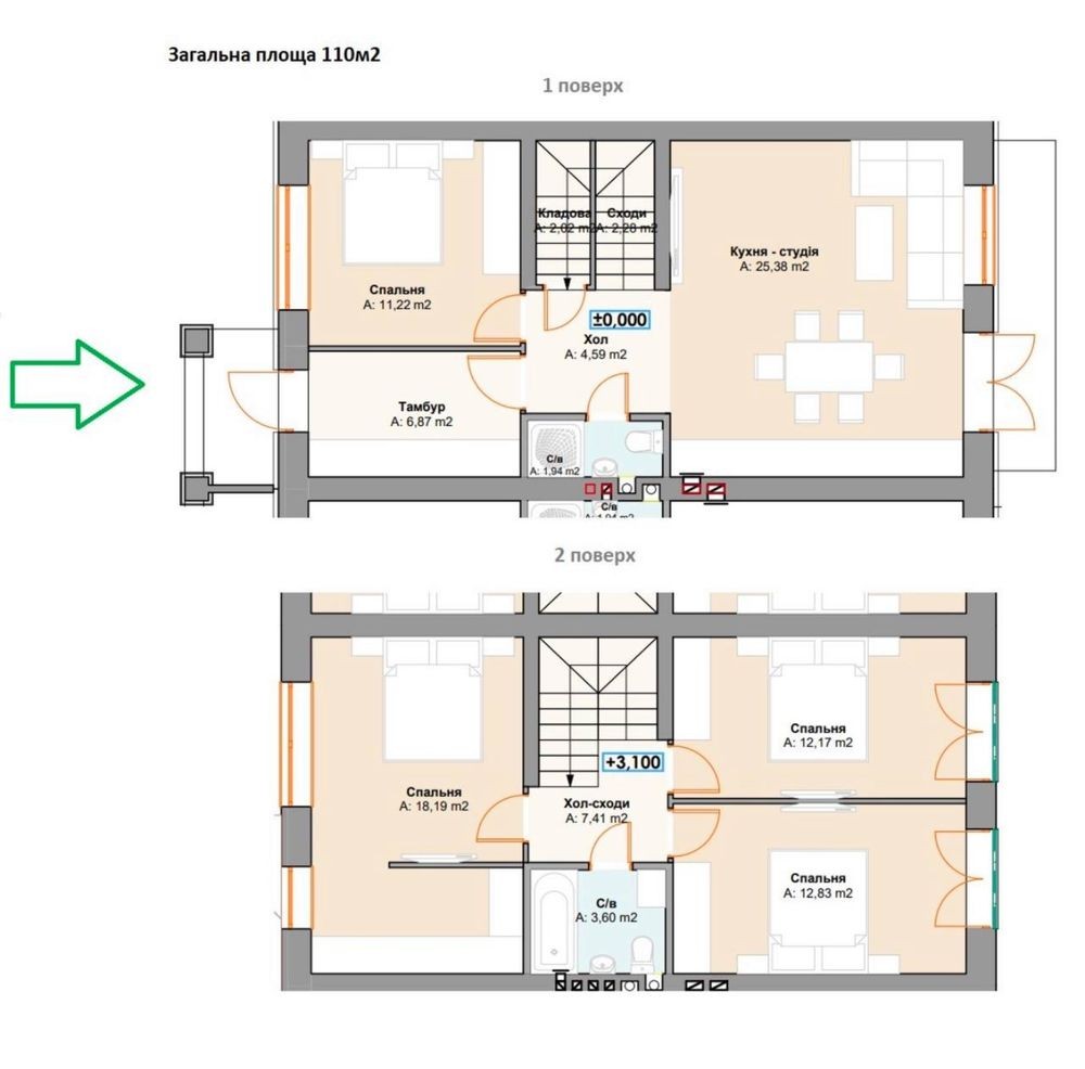• Общая площадь 110 м2