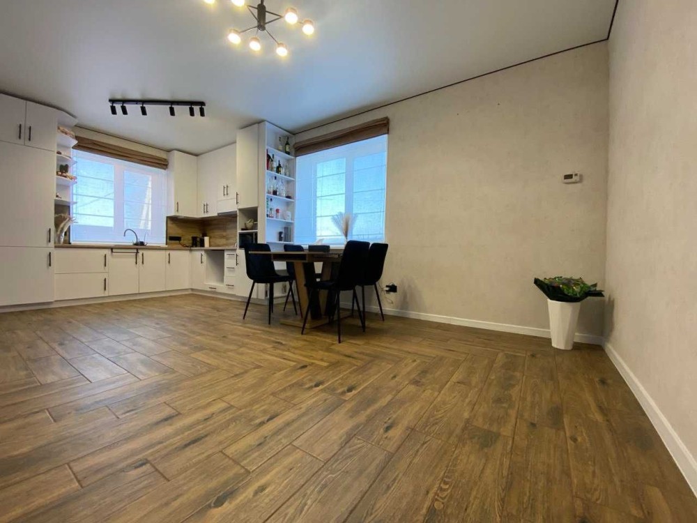 Практичне планування - кухня-вітальня, дві окремі кімнати, санвузол, гардеробна та кладова.