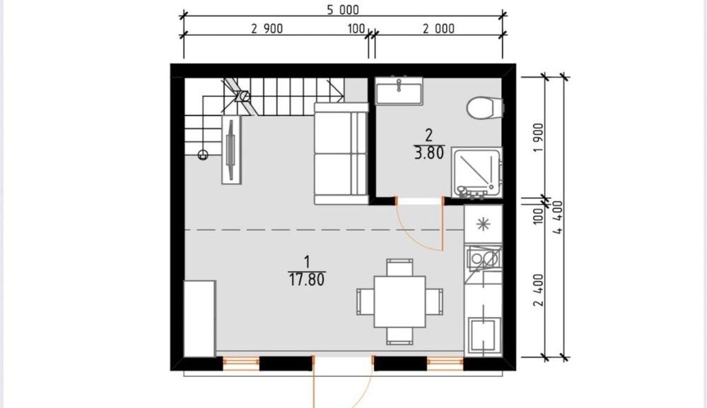 1 поверх — кухня-вітальня, санвузол