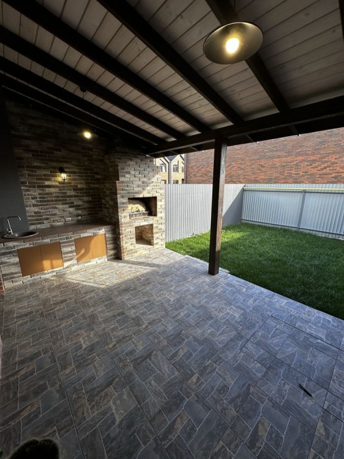 Є 2 двори - передній для паркування авто та задній зі зробленою терасою , де встановлений також літній камін з цегли та робочою поверхнею та водою проведеною на вулицю .