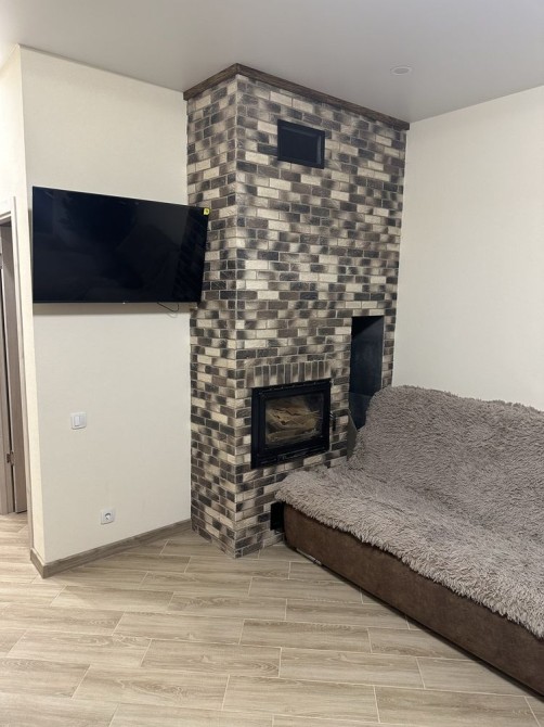 На першому поверсі : простора кухня- вітальня з діючим дровяним каміном , що дуже продумано, якщо буде відключення електроенергії , будинок буде в теплі. Передпокій , санвузол , технічна кімната та 1 спальня .