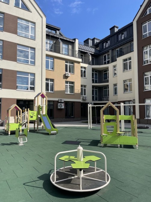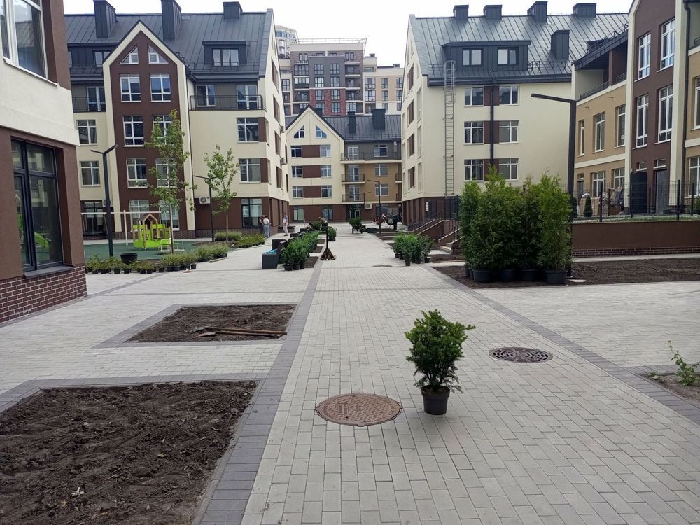 Будинок повністю з закритою територією,облаштований неймовірним ландшафтним дизайном,дитячим майданчиком,є підземний паркінг,будинок облаштований ліфтами,відеоспостереженням і доглядом за будинком.