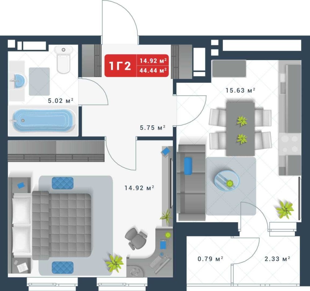 • Общая площадь 45 м2