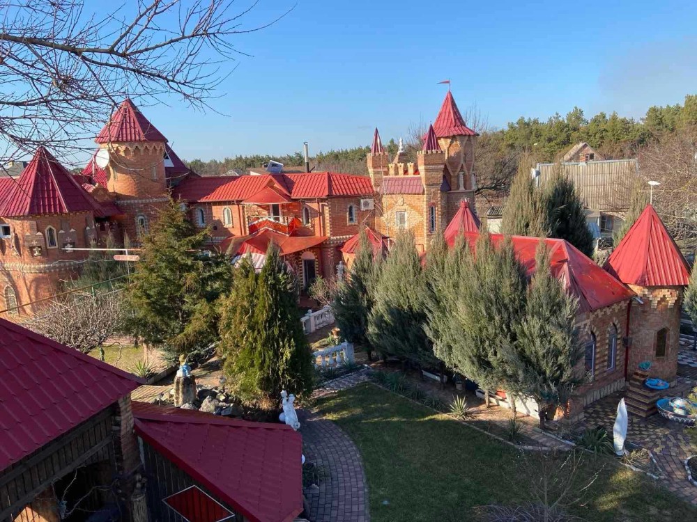 Продається житловий 3-поверховий будинок у замковому архітектурному стилі на березі Дніпра 250 кв.м. , 14 кімнат . В селі Розуівка.