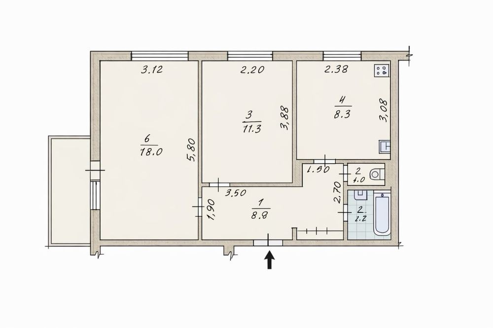• Двухкомнатная