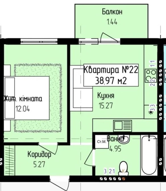 Площа 39 м.кв,