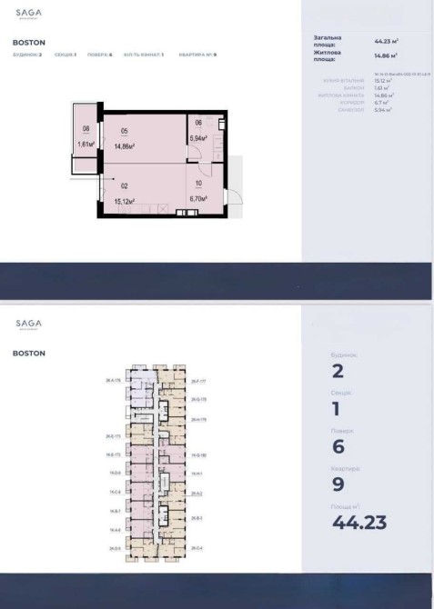 Площа: 44 м²