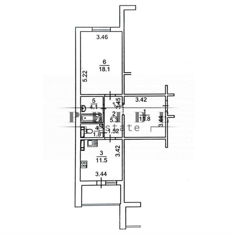 • Трехкомнатная