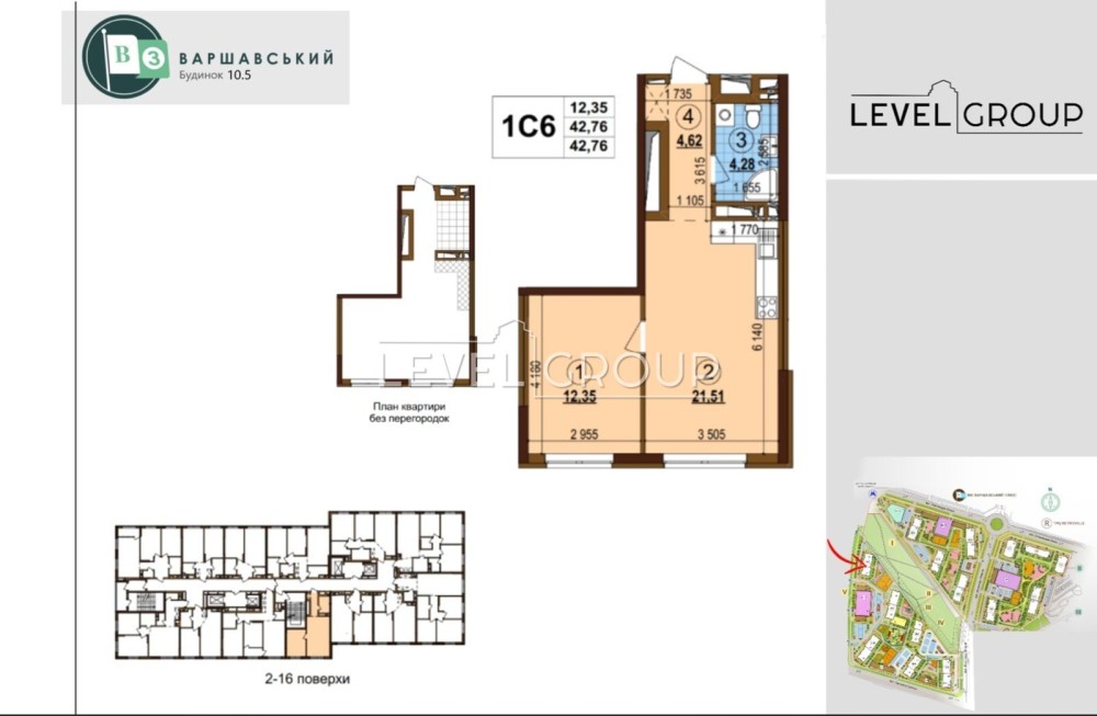 Загальна площа: 42,76 м²