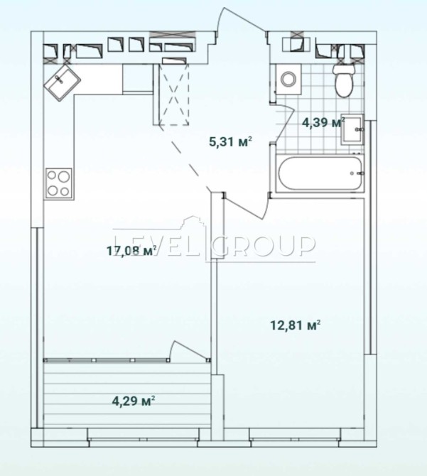 • Площадь кухни 17.08 м2