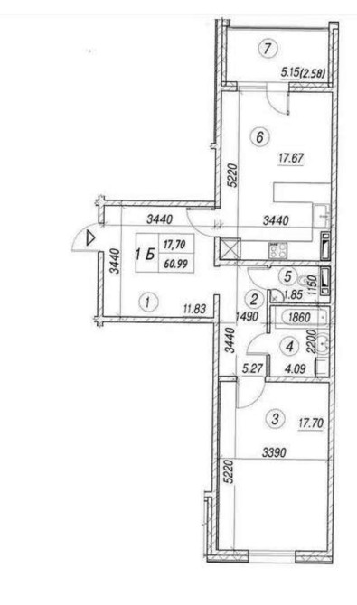 • Общая площадь 60.99 м2