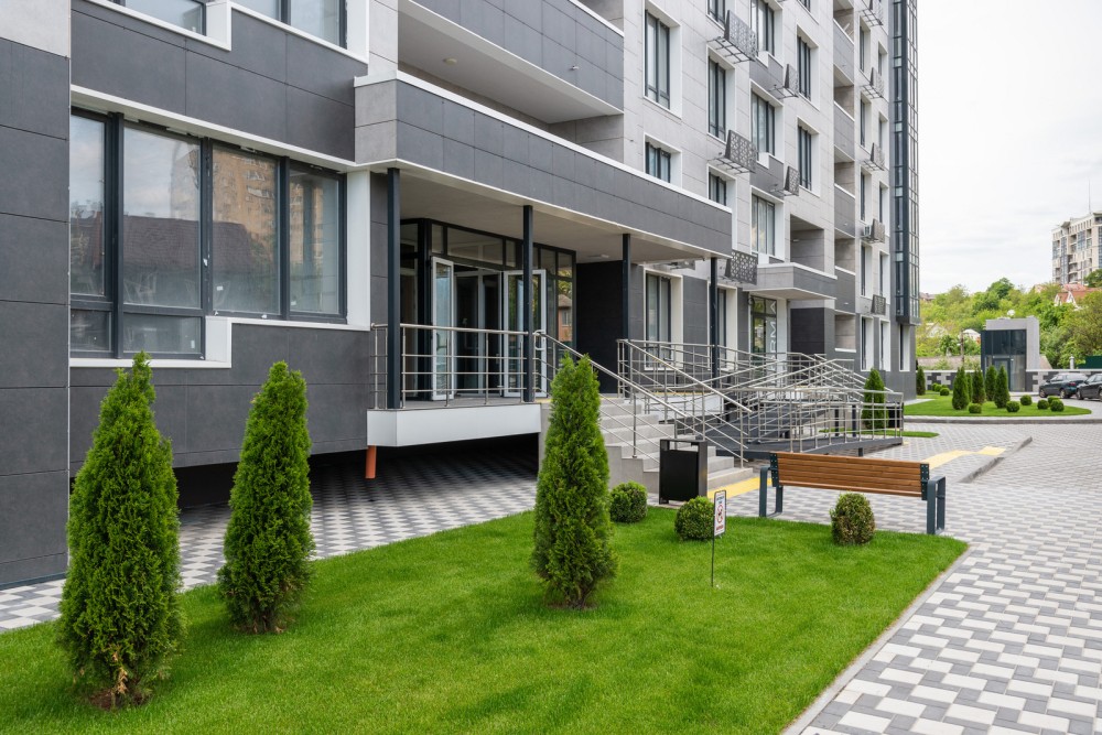 На території комплексу: підземний паркінг, закритий дитячий та спортивний майданчики, закритий та охоронюваний внутрішній двір для мешканців, гостьова парковка.