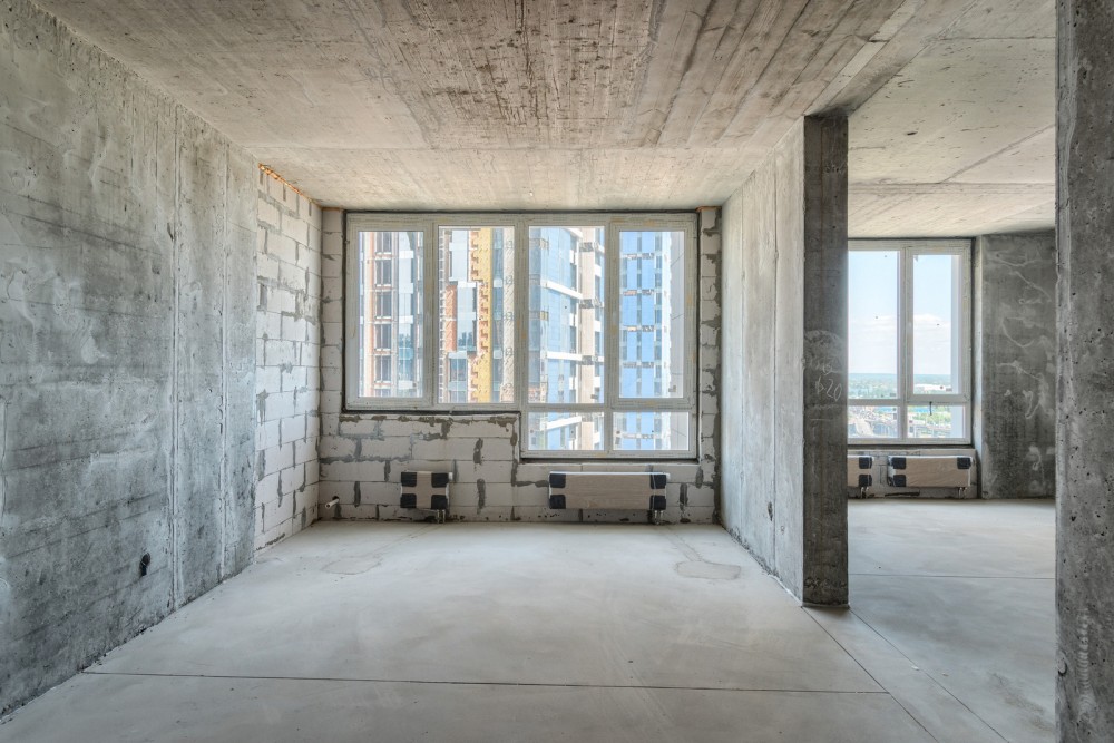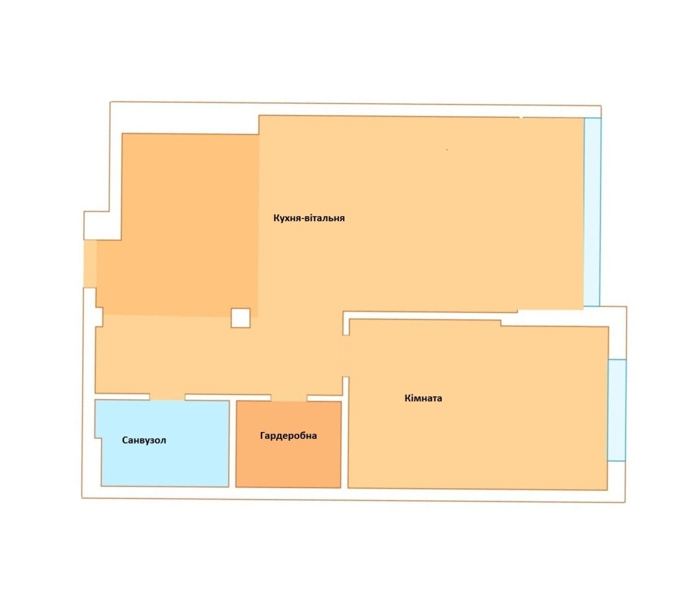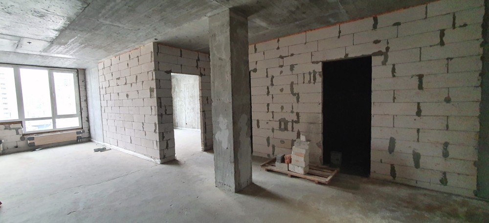 Квартира після будівельників. Велика кухня-вітальня, спальня, санвузол, вбиральня.