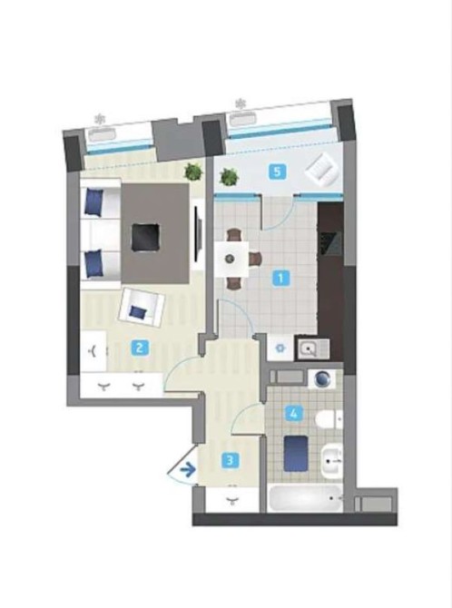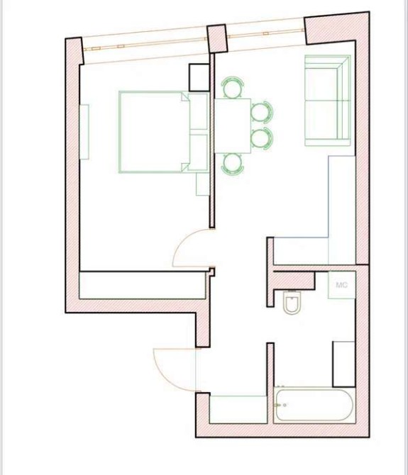 • Общая площадь 44 м2