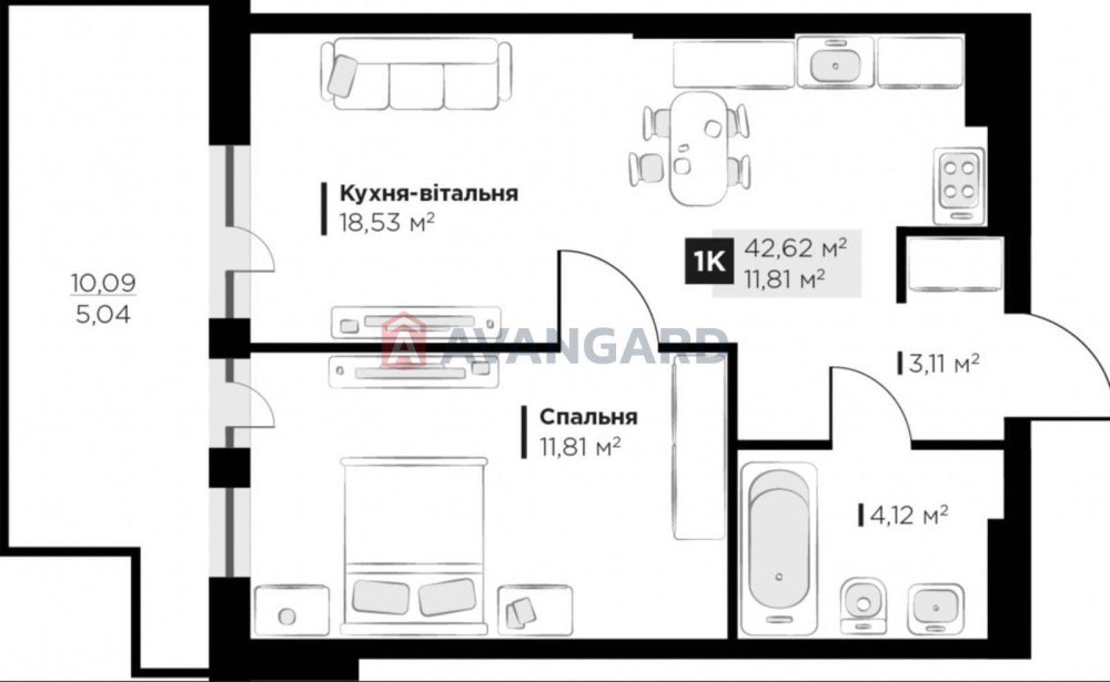 • Общая площадь 42 м2