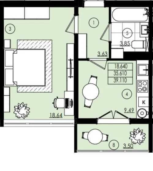 • Общая площадь 39 м2