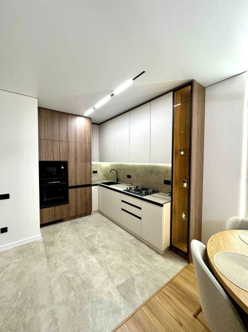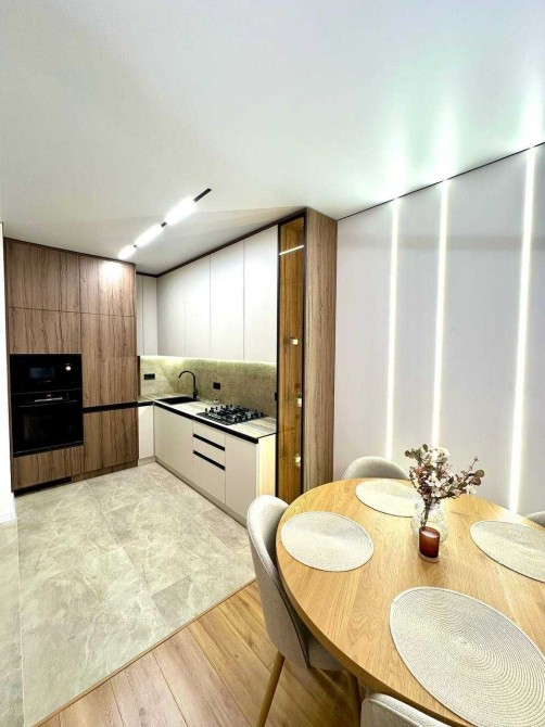 Кухня наповнена всією необхідною технікою:варильна поверхня, духова та мікрохвильова піч, посудомийна машина, вбудований холодильник.